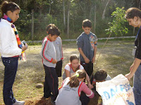 Eles trabalharam em equipe e agora (como moram no Bairro), mensalmente devem trazer um relatório à sala de aula de como se encontra a sua muda. Relatório este que serve para o aprendizado de todos, pois o texto é reestruturado (com retroprojetor) e contribui para a elevação do nível de escrita de cada um.